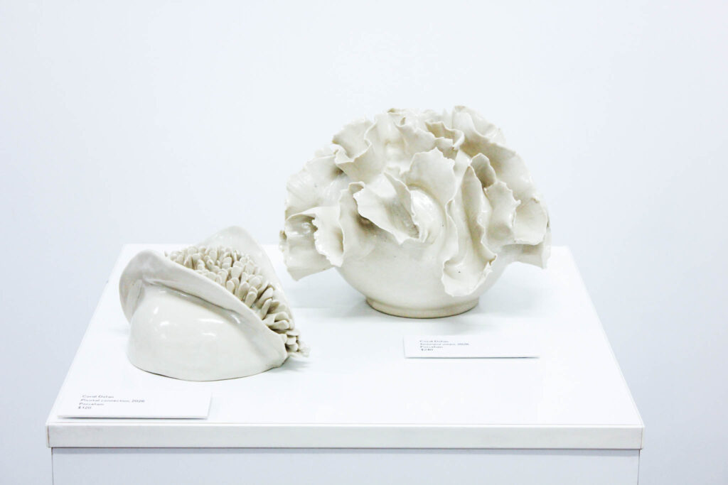 In this exhibition I hope to not only raise an awareness of the threats to the continued health but to also communicate the fragility of the reefs. While coral bleaching – an indicator of stress caused by changes in temperature, light or nutrients – may cause them to turn white, they can still recover.