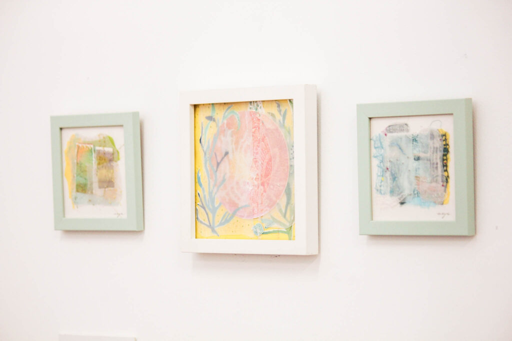 ‘bijou’ is a collection of small moments – collages and linocut prints shaped by quiet colours and delicate forms. Each work is modest in scale, yet holds layers of thought and texture. Like jewels, they carry a sense of preciousness not through grandeur, but through restraint, intimacy, and the small pleasures of noticing.