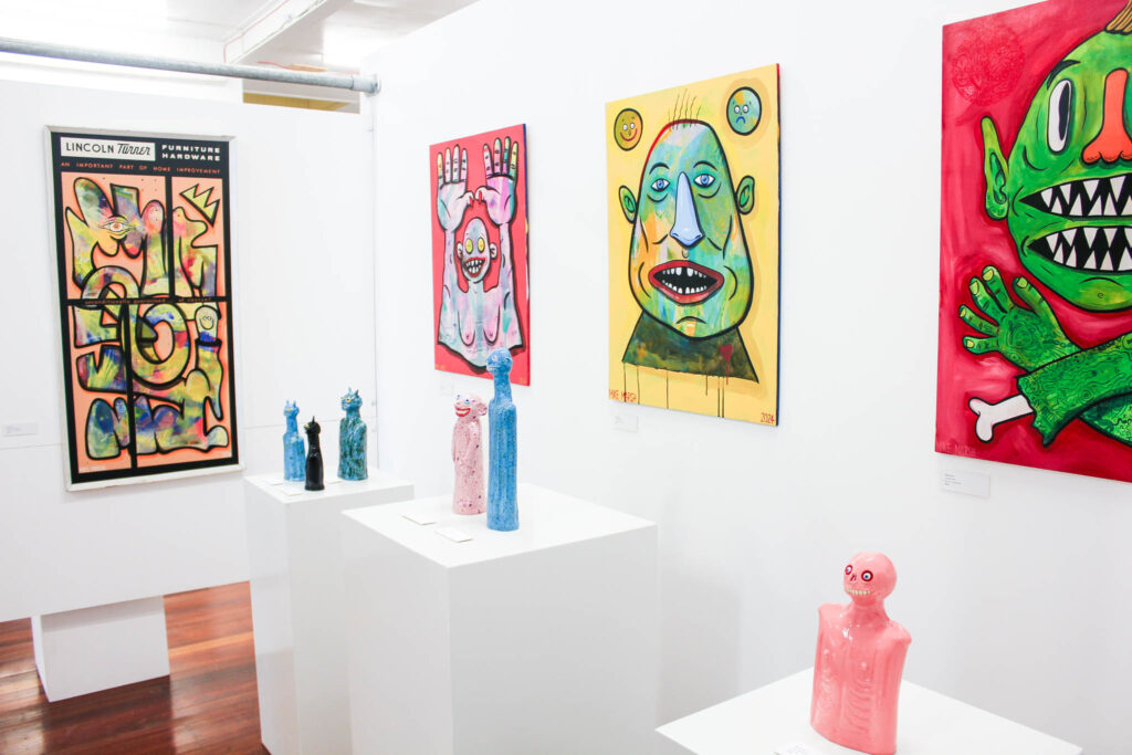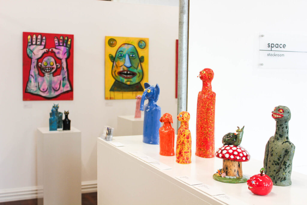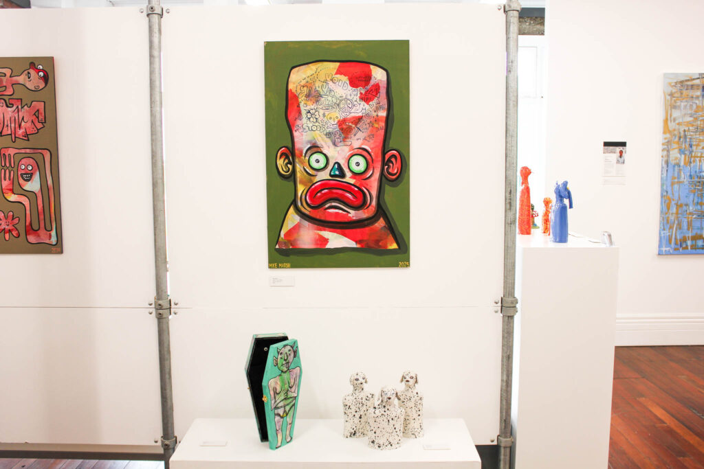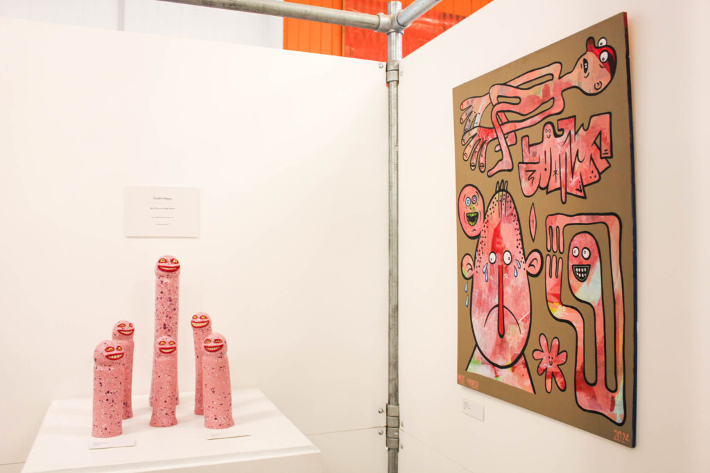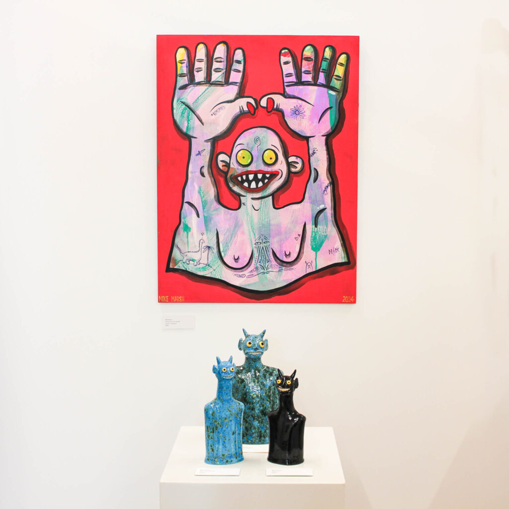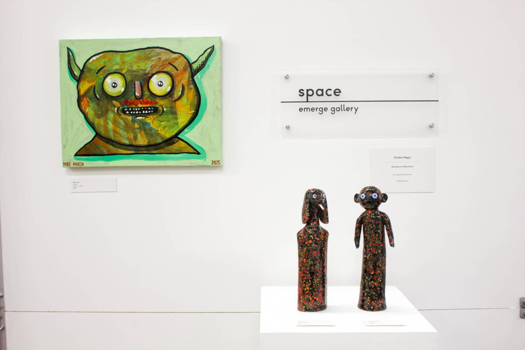 Double Happy sarahMarch 31, 2026 Double Happy Mark Rayner & Mike Marsh Opening: April 8 5:30 pm Viewing: April 7 until April 24 Two smiles are better than one. { Emerge Gallery } Works: Hardware Happenings Hands Up if You Love Me Either Way Bae A Distraction Terrance 4 Jesus Personal Growth Under / Over Thinking Reggie’s Inner Darkness Tall Crystal Dog & Guy Blue Nellie Orange Crystal Guy Crystal Dogs Magic Mushroom Green Swamp Monster Little Bad Apple Blue Crystal Devil Devils Pinky! Blue Crystal Guy Pink Skeletor! Happy Worms Spotty Dogs « Beneath the surface: signals from the reef LAST SEEN: Protest Banner Portraits of the Escapee Menagerie »