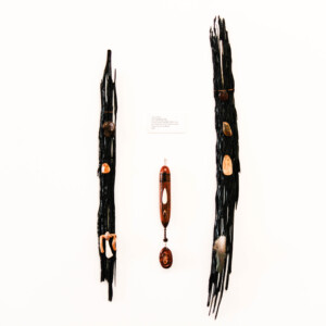 Wayne draws inspiration in the natural environment: – designs, patterns, shapes, structures, and colours. Especially those found in the sea, along coastlines, and foreshores, and far up old riverbeds and into forest remnants. His emphasis in this exhibition is to use recycled, organic, and natural materials as much as possible. “My work as a restoration ecologist has enabled me to explore the patterns and connectedness of all natural ecosystems and has helped to inspire many of the art works I have done”.