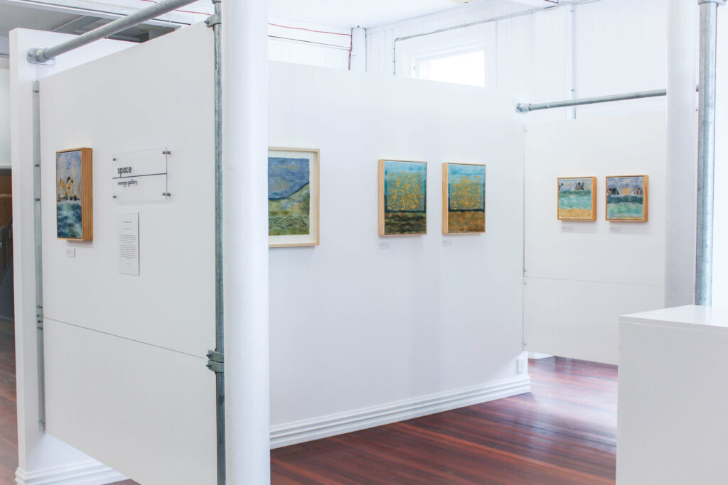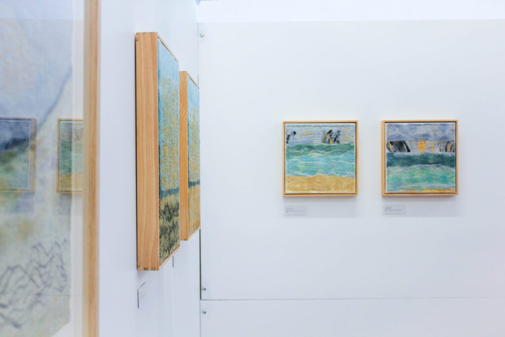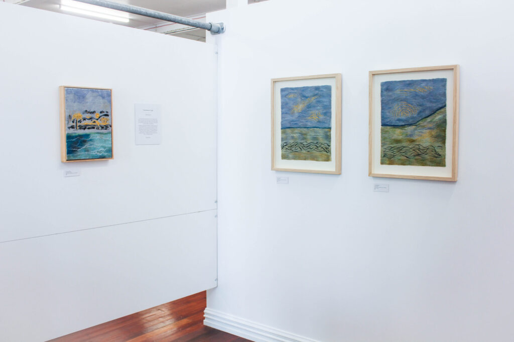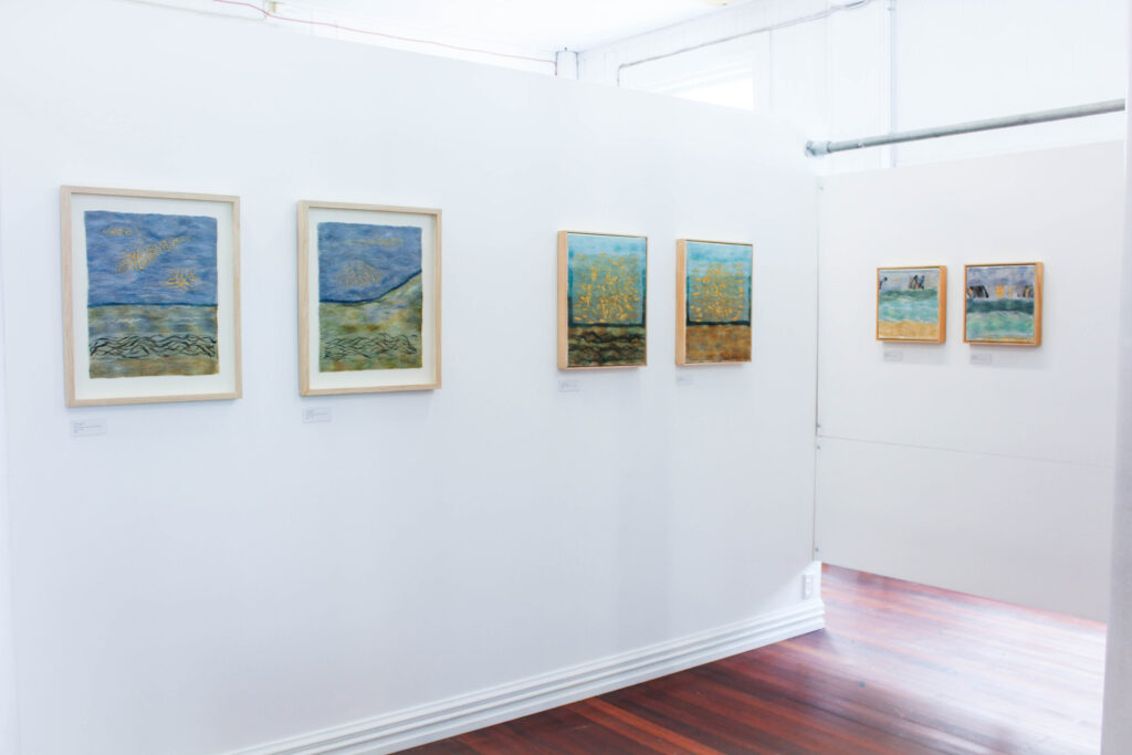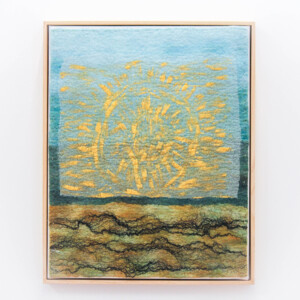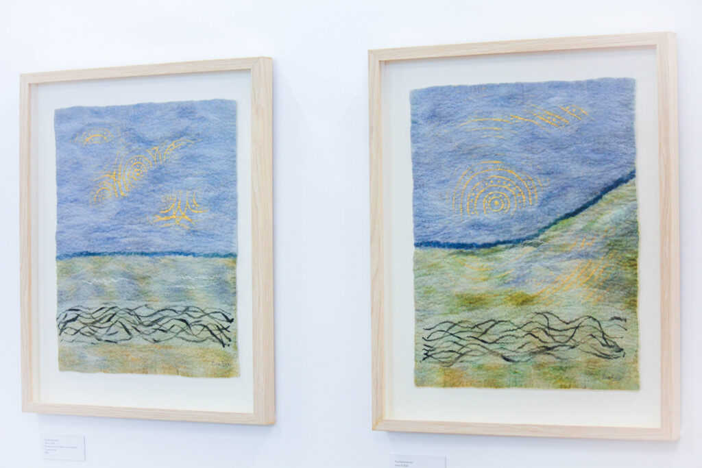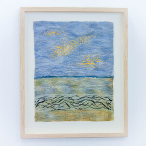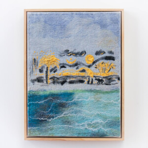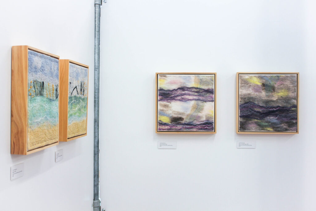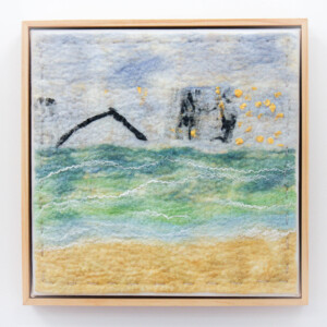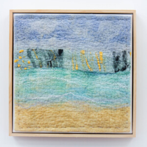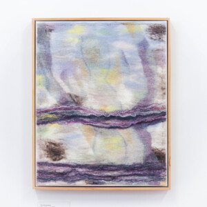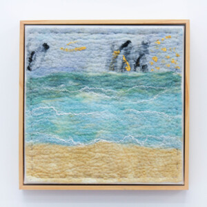 This series of felted works emerged since I moved into my studio at Space Gallery where I started to play with acrylic paints on sheer silk fabric which are then incorporated into my usual medium of felting. The use of acrylics enabled me to paint intuitively whatever wanted to come through me in the moment and to be later transmitted into felted paintings.