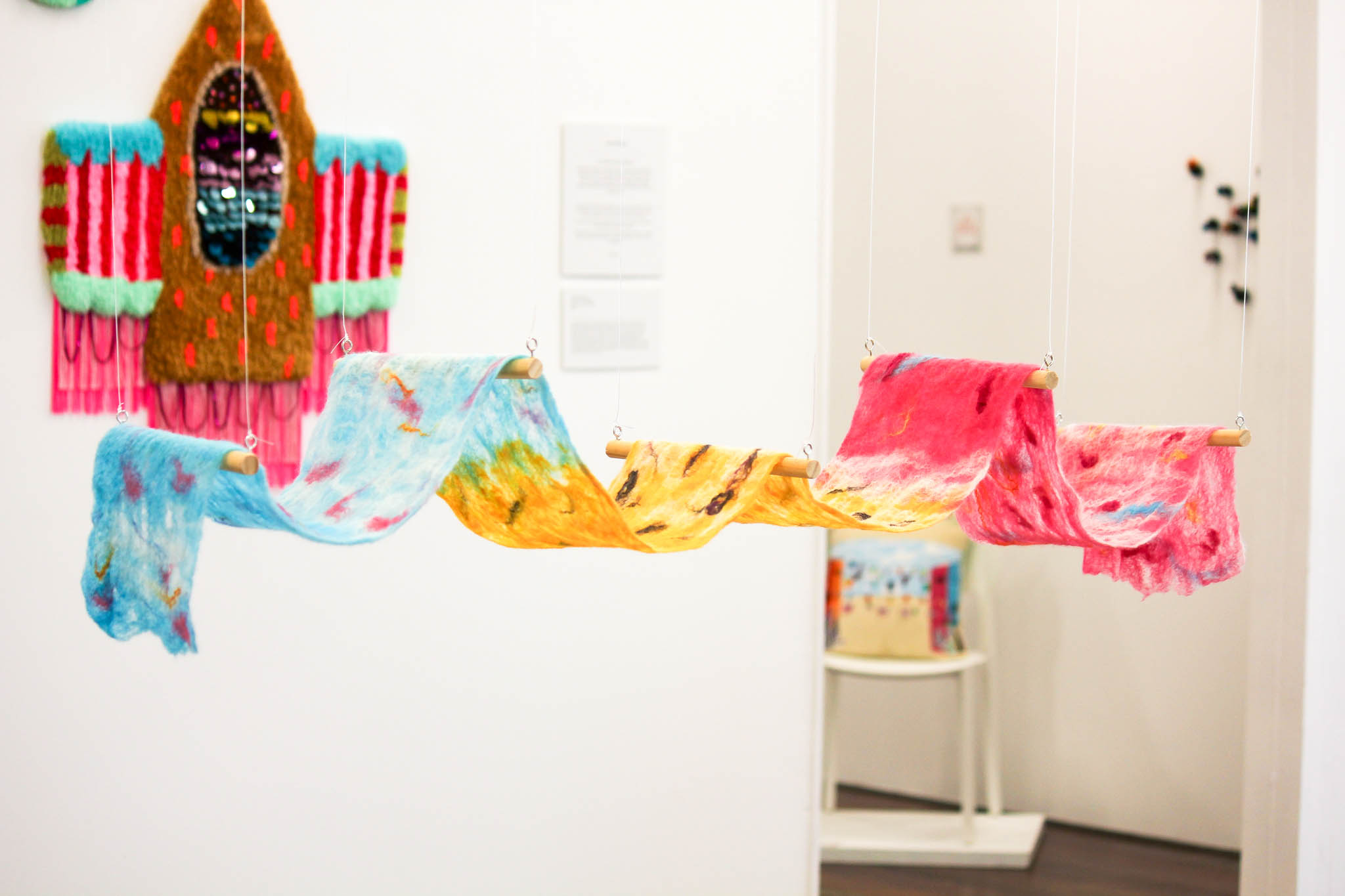 This very colourful scarf would fit perfectly in a Let’s fiesta exhibition. It’s a piece of clothing, but also a piece of art. It represents joy and pure happiness, its blobs and splotches each a different size and shape, like people on a dance floor. This special scarf took about 4-5 hours, not including drying time. It just goes to show, that the process of many things is tough and time consuming, but its result is something unimaginably beautiful.