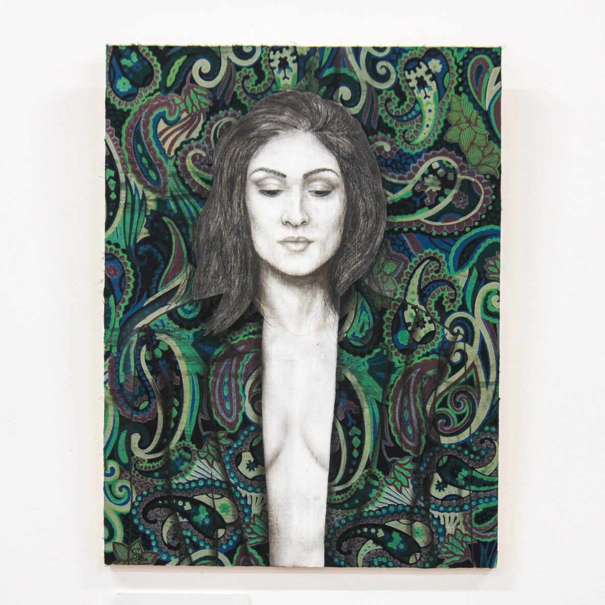 Medium: Charcoal on vintage silk