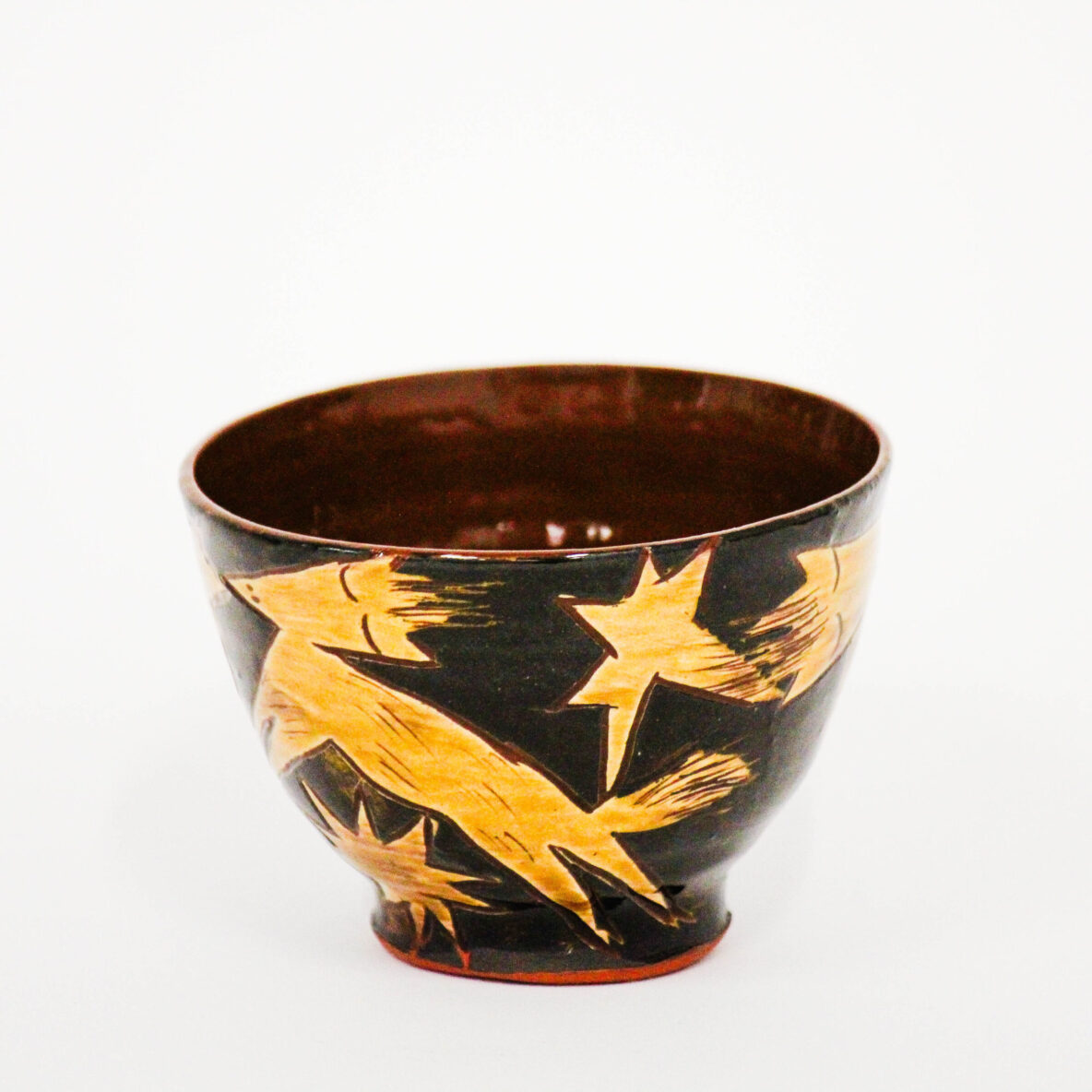 Flying Animals Bowl – Tiny sarahNovember 19, 2025 Flying Animals Bowl – Tiny $50 Size: 90mm x 60mm Medium: Red earthenware, slip, underglaze, glaze Status: Sold
