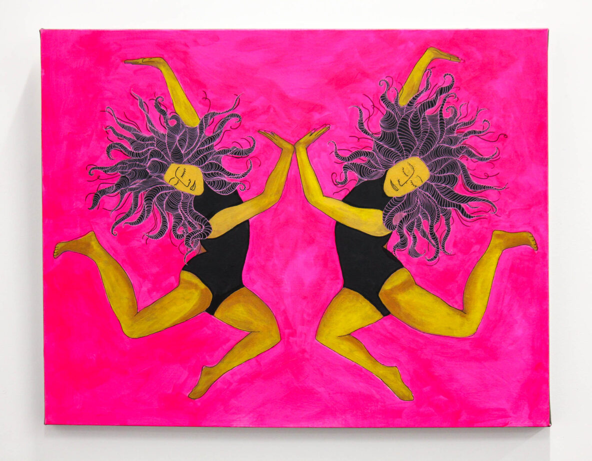 I keep coming back to the human body in my work. It’s an anchor for me, a way of holding emotion and experience without having to explain it too much. In this piece, the doubled figure speaks to connection, sisterhood, and the kind of energy that builds when joy is shared rather than witnessed.