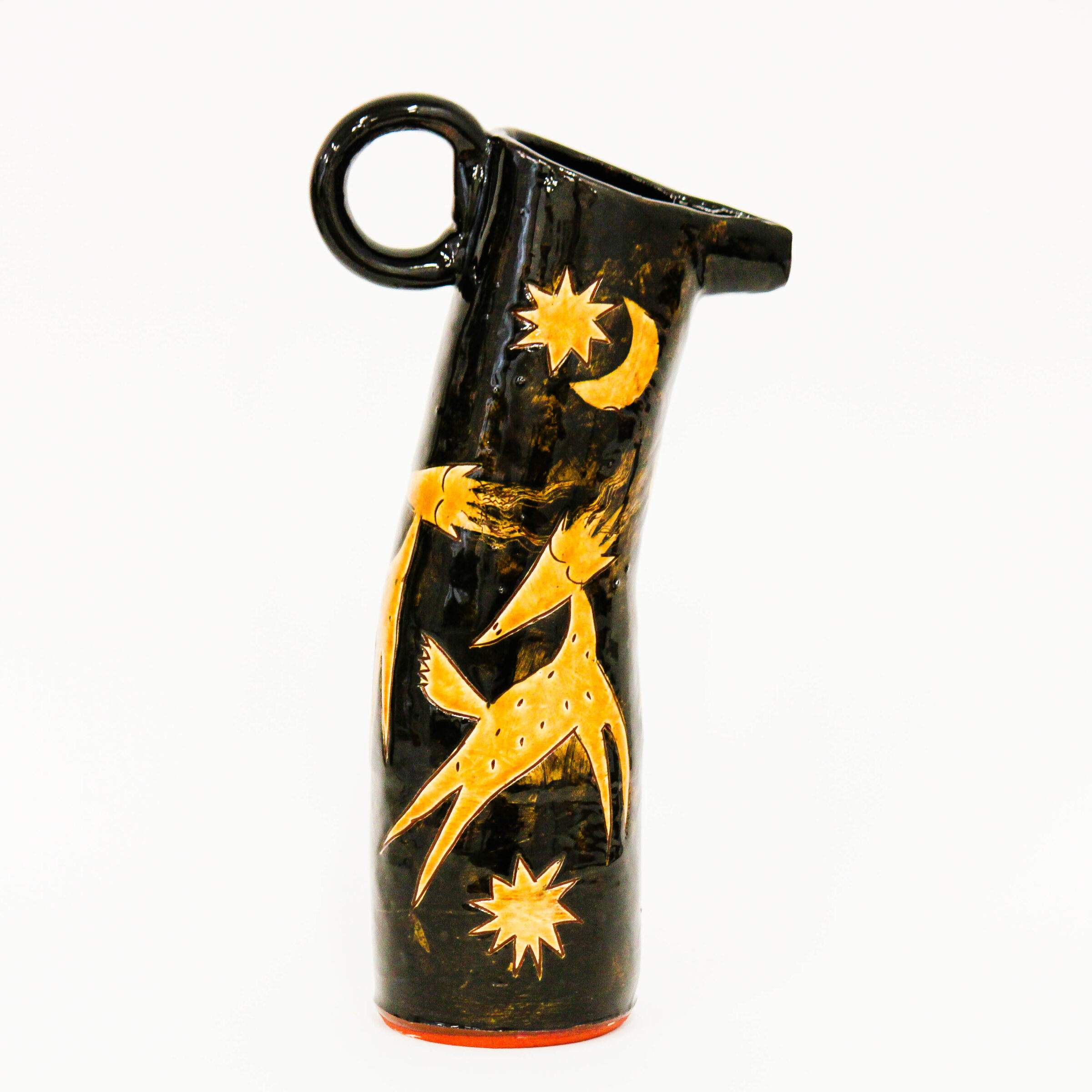 Pitcher – Tall 1 sarahNovember 19, 2025 Pitcher – Tall 1 $200 Size: Approximately 170mm x 300mm Medium: Red earthenware, slip, underglaze, glaze Status: Sold